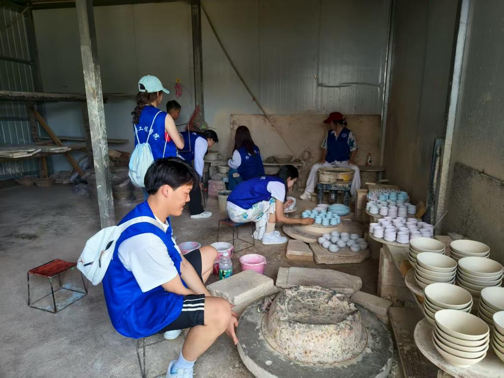 当日下午,团队奔赴博尚碗窑村。依山而建的龙窑沿用乾隆年间的形制,窑火绵延近三百年,世代传承制陶工艺。在陶艺工坊,实践团队聆听陶艺制作技艺非遗代表性传承人的故事,感受传统技艺魅力。