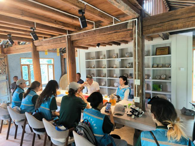 同日下午,实践团队采访了“秧塔大白茶传统制作技艺传承人”李大昌老师,从他口中了解到,秧塔大白茶是景谷县民乐镇的一颗璀璨明珠,有着悠久的历史。道光年间,当地傣族土司命将大白茶用红丝线编成谷穗状,然后将大白茶用马驮进皇宫,向朝廷进贡,因其口味独特,受到皇室青睐,被道光皇帝授予“白龙须贡茶”的称号。除此之外,团队成员还前往景谷大白茶有限责任公司参观了绿茶的加工工艺,在景谷古生物化石展陈馆和中国景谷大白茶研究中心进一步了解了景谷大白茶的历史和发展现状。