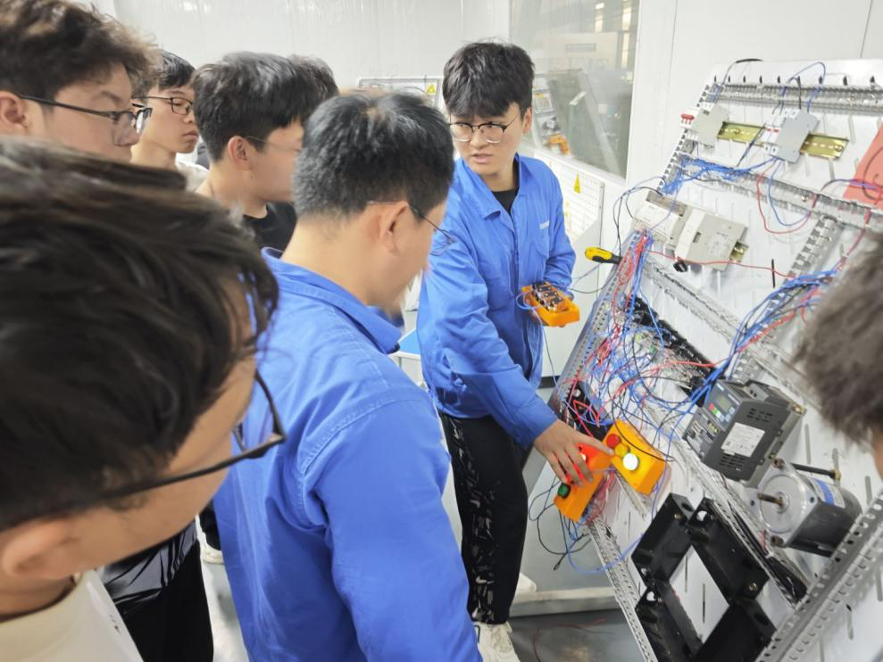 在奇瑞汽车总装车间,团队成员近距离观摩了自动化焊接机器人、AGV无人配送系统、数字化质量检测平台等先进技术应用。奇瑞工程师介绍,公司通过“工业4.0”标准打造智能工厂,整车生产效率提升30%,不良品率降低至0.5%以下。奇瑞技术研发中心负责人与团队开展座谈,重点介绍了奇瑞在混动技术、智能网联等领域的突破。团队成员结合所学知识,就“新能源汽车电池管理系统优化”“智能驾驶算法开发”等问题与企业专家深入交流。在工程师指导下,团队成员参与生产线调试、机械臂编程等实操训练,进一步掌握PLC控制、机器视觉检测等技术的实际应用。