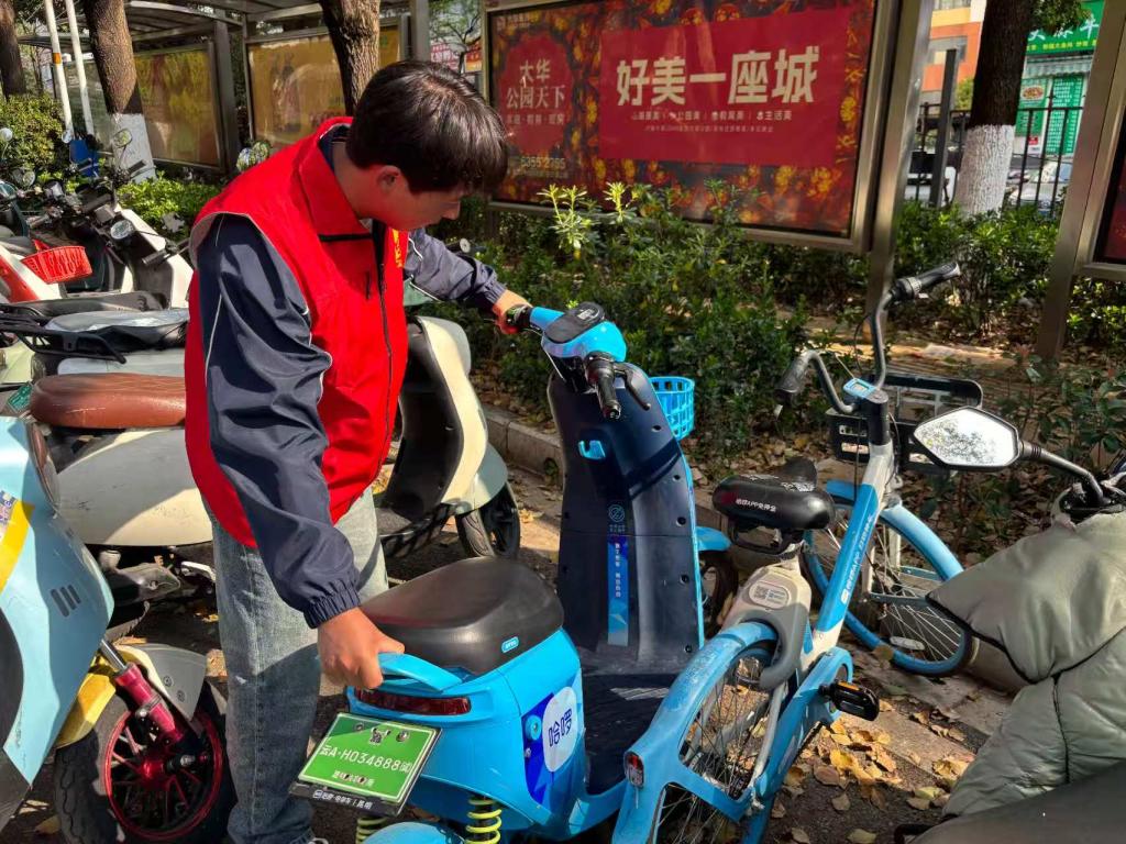 活动开始前,学院党委书记周义方对志愿者进行了简要动员,明确了活动区域、整治重点和安全注意事项。下午4时,志愿者们准时抵达指定区域,分组开展活动,有的将歪斜、倒地的共享单车逐一扶正,有的将零散分布、违规停放的车辆搬运至指定停车区域,有的对车辆进行统一摆放、整齐排列,确保车辆停放规范有序、朝向一致。面对部分占用盲道、消防通道和人行道的车辆,志愿者们耐心清理、规范挪移,及时消除通行障碍。在整治过程中,志愿者们还主动向过往师生、市民宣传文明骑行、规范停放的重要意义,倡导大家自觉爱护公共设施,遵守交通秩序,共同维护良好的出行环境。经过两个多小时的辛勤劳动,学校南门、西门周边原本杂乱无序的共享单车变得整齐划一,校园出入口及周边道路面貌焕然一新,通行环境更加顺畅整洁,得到了过往师生和周边群众的一致好评。